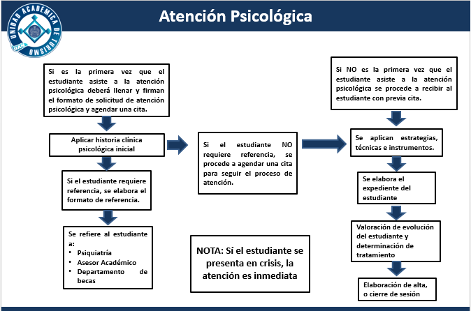 El área de psicopedagógico tiene también entre sus funciones brindar a los estudiantes de la UAT un servicio de orientación, atención y diagnóstico psicológico, en donde podemos trabajar con necesidades: Emocionales, conductuales y de personalidad, la atención psicológica puede ser por solicitud directa del estudiante o canalización por parte del tutor.
